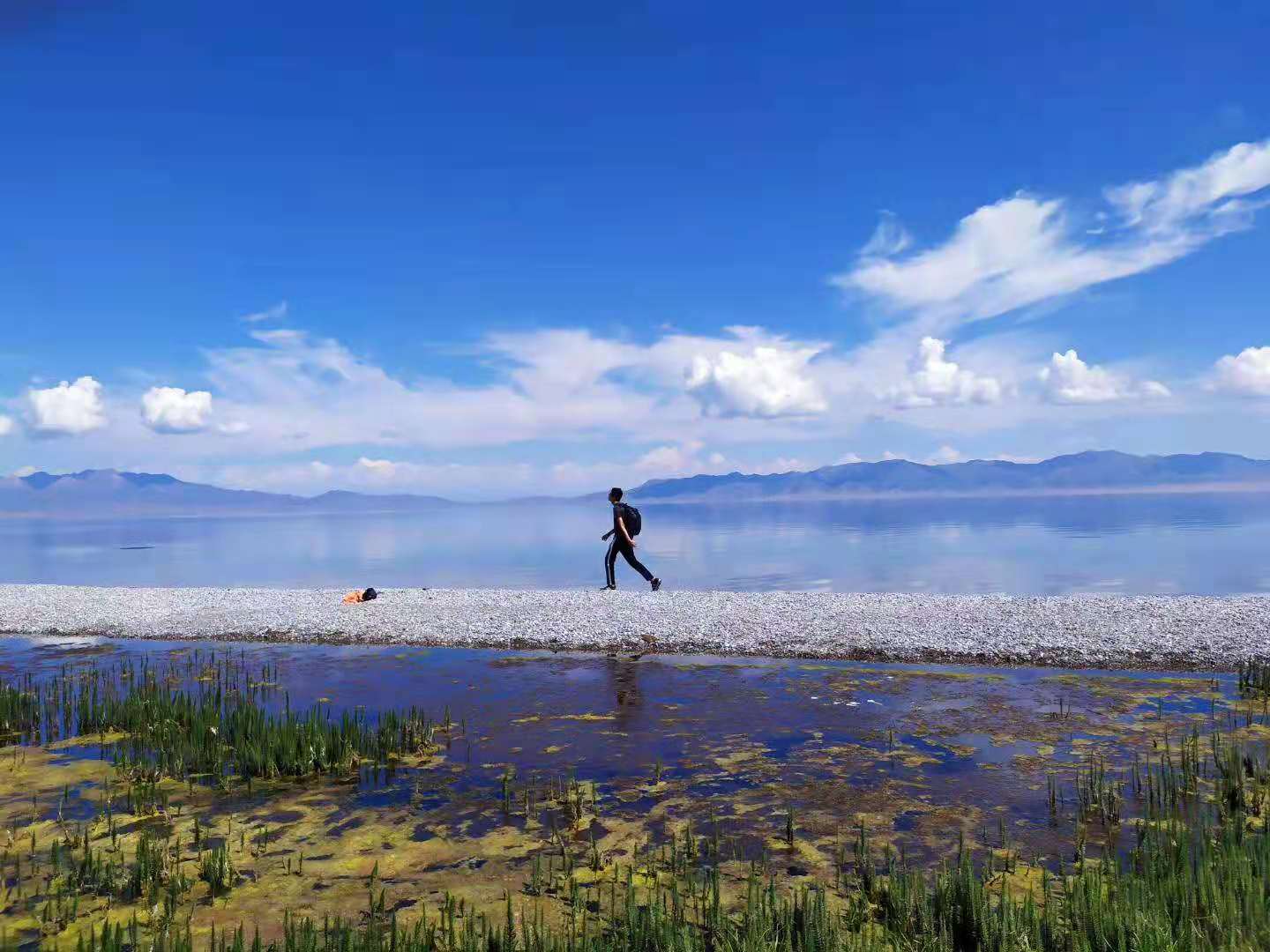 藍格盈盈的湖水 是不是你牽了藍天的衣角 澄澈見底的清明 是不是你不想掩藏的歡快與憂傷 你溫潤體質 凝煉如玉 是不是西天山隱逸的精魂