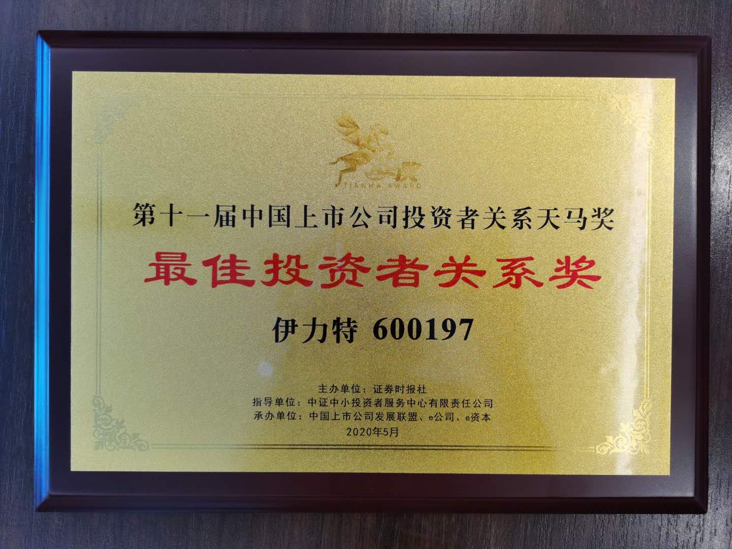 近期,“第11屆中國上市公司投資者關系天馬獎”獲獎榜單發布。新疆伊力特實業股份有限公司榮獲“最佳投資者關系獎”,公司董事會秘書君潔榮獲“最佳董秘獎”。