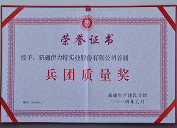伊力特實業股份有限公司被新疆生產建設兵團質量技術監督局授予“2010年度兵團質量管理先進企業”稱號