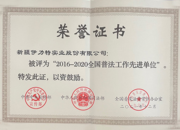 在新疆社會經濟評價及調查中心、新疆天山網共同組織的評選活動中,伊力特實業股份有限公司產品被評為“新疆首屆百姓口碑最佳榮譽產品”